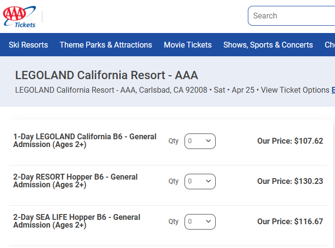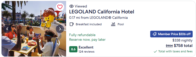 Let’s see how to get the best hotel + park tickets deal for Legoland California. I compare prices across the best booking sites using the same dates in order to compare apples to apples.