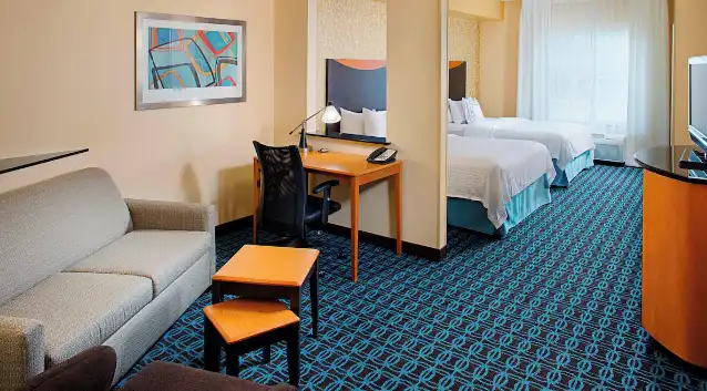 The Fairfield is the only all-suite hotel in the area, which makes a real difference when you’re sharing a room with kids. Every room has a separate living area with a sofa-sleeper, microwave, and fridge – essentially a small apartment. It’s also the closest major hotel to the North entrance.